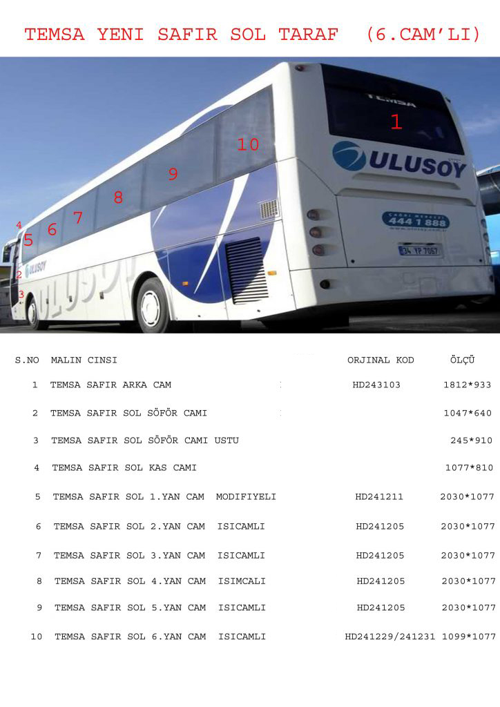 TEMSA YENİ SAFİR SOL TARAF (6.CAM’LI)